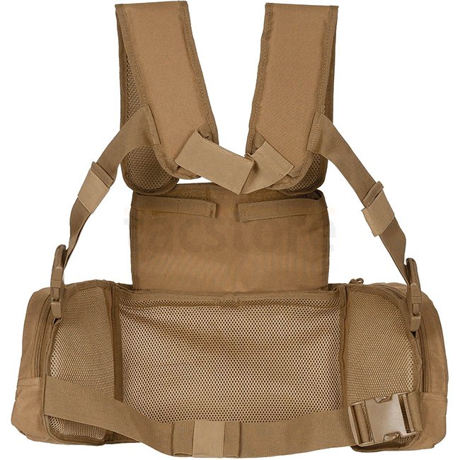 Light, tactical combat vest with modular system also wearable over a ballistic vest shoulder-, abdominal and waist area with breathable mesh padding adjustable, detachable shoulder straps with D rings and various loops as well as an elastic velcro strap at the back 2 lateral utility pouches with 2 way zip as well as Molle attachment loops and 1 D ring inside e.g. suitable for 1 litre US canteen 4 adjustable ammo pouches at the front with velcro, adaptable for all common magazines and usable as double ammo pouches fold-in front panel with map compartment slide-in compartment with velcro at the front inside adjustable waist strap Molle attachment loops and velcro panels all over the outside of the vest for attachment of additional equipment Weight: ca. 1,2 kg