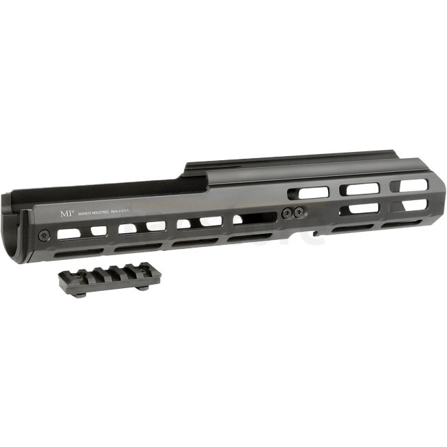 Enhance your Benelli M4 with this M-LOK Handguard by Midwest Industries. Made of 6061 aluminum, anodized. Compatible with Benelli M4 and weapons with identical dimensions. Includes a 5 slot Picatinny rail with M-Lok. Length: 305mm. Weight: 246.6g. Made in