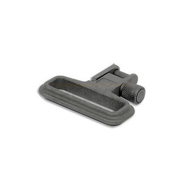 Durable all-steel sling swivel with a locking knurled thumb sleeve. Fits traditional sling studs and supports slings up to 32mm (1.25"). 100% Made in USA.