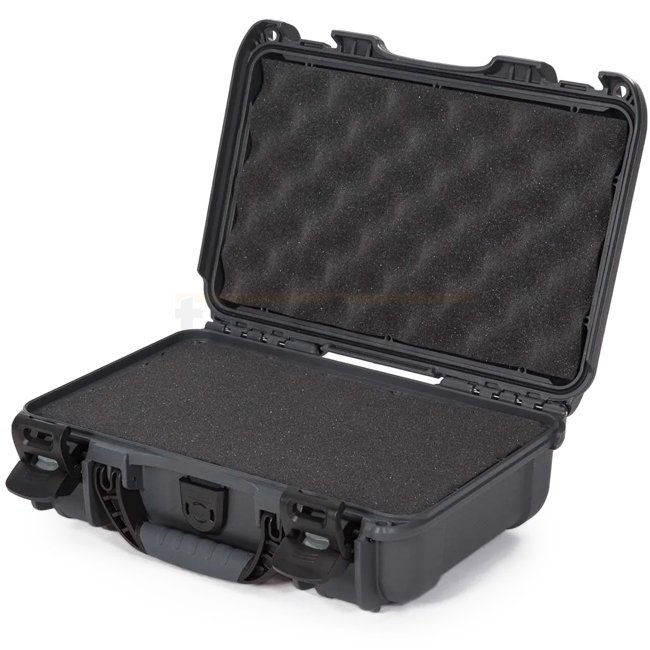Durable protective case made from NK-7 resin featuring the PowerClaw latching system, automatic pressure-release valve, soft-grip handle and stainless-steel hardware. This version includes a foam insert (closed-cell base foam and egg-crate lid foam) for secure storage and transport of compact gear.