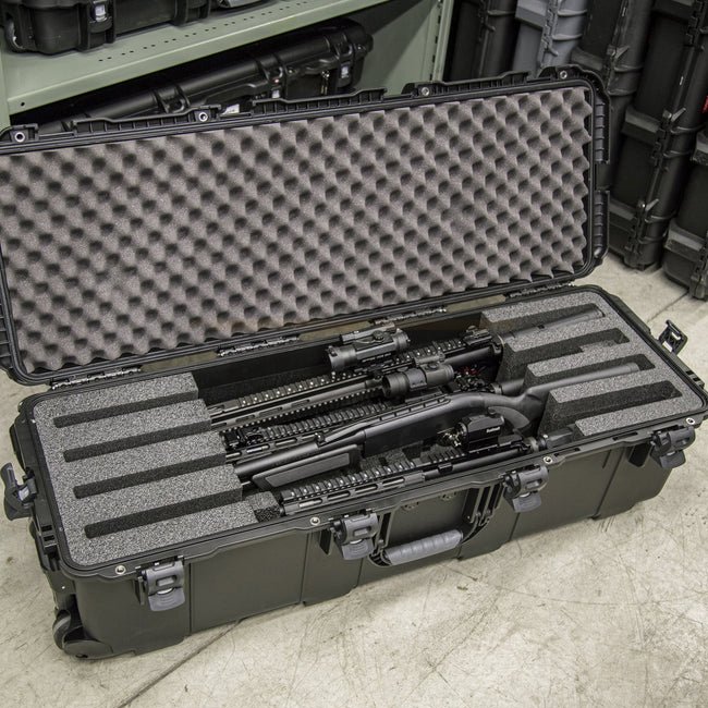 - Interior configuration: 4-UP Rifle closed-cell foam insert with central magazine/accessory cavities; lid foam included