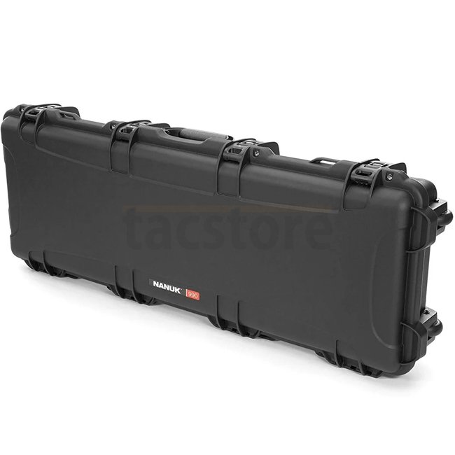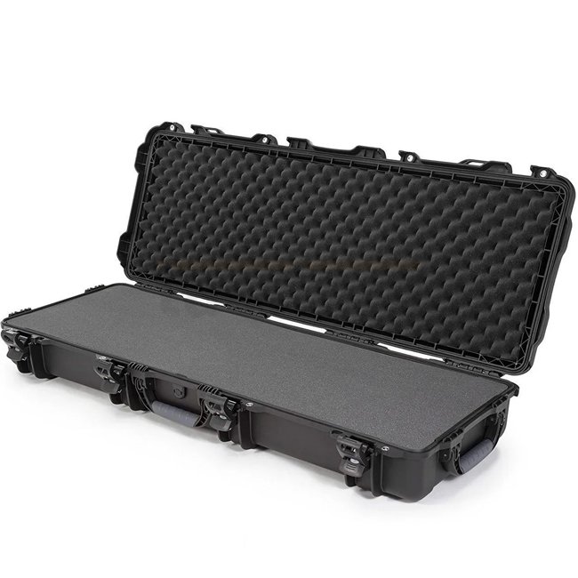 Long-format heavy-duty protective case made from NK-7 resin with the PowerClaw latching system, automatic pressure-release valve, soft-grip handle and stainless-steel hardware. This variant includes a multi-layer pre-scored cubed foam insert in the base plus lid foam, delivering premium padding and organised storage for long guns, optics and accessories.