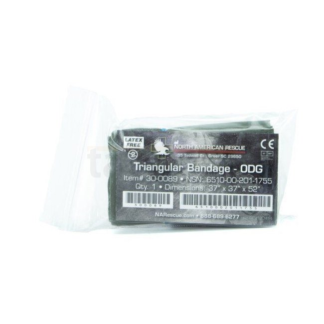 NAR Triangular Bandage - ODG is a versatile and durable medical tool that can be used as a bandage, sling, or tourniquet. Its OD green color makes it suitable for military or outdoor use. Compact and lightweight, this bandage is essential for first aid ki