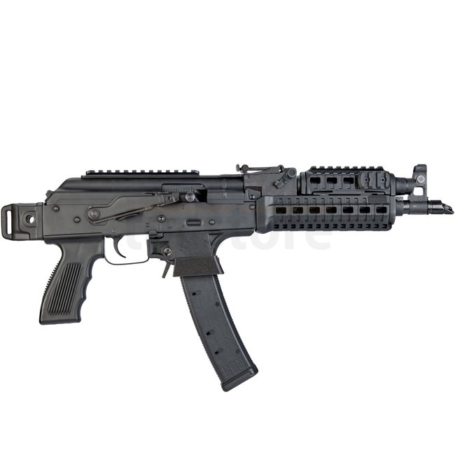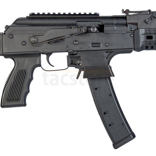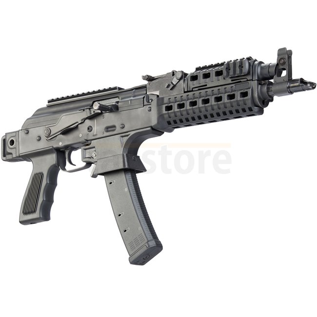 Short, high-performance semi-automatic pistol evolved from the CTS9 platform to provide fast handling, low recoil impulse and exceptionally quick emergency reloads. The furniture is AK-compatible and supports wide accessory configuration.