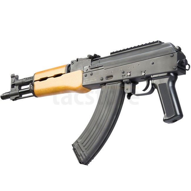 Compact classic pistol variant with wooden furniture, aimed at users who prefer a simple, customizable no-stock configuration. Works with AK-compatible magazines and supports wide customization.
