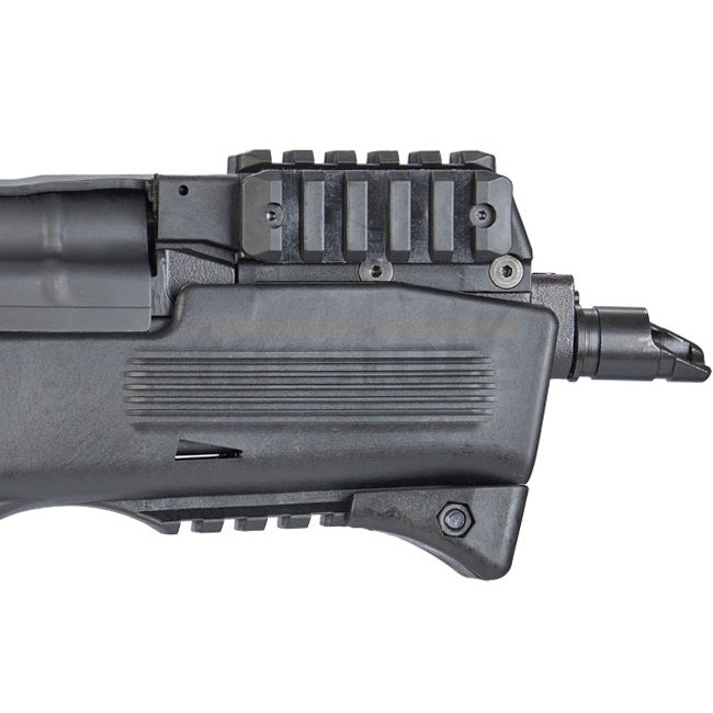 - Special functions: After the last round the bolt remains open; captive dust cover