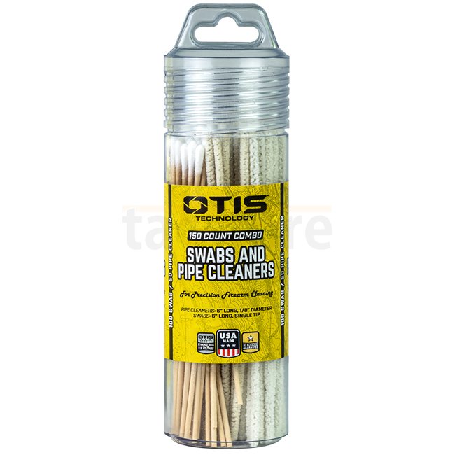 Keep your firearms and smoking pipes in top condition with Otis 100 Swabs & 50 Pipe Cleaners Combo Pack. Ideal for precision cleaning, this pack includes 100 cotton swabs on wooden handles and 50 pipe cleaners made of flexible wire core with absorbent cot