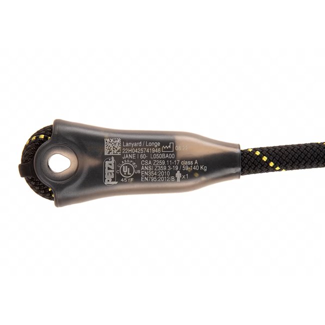 The Petzl JANE Lanyard 60 is a non-adjustable fall arrest lanyard designed for professional use in hazardous environments. Certified to CE EN 354, EN 795, and ANSI Z359.3 standards, this dynamic rope lanyard is available in 60 cm length and is compatible
