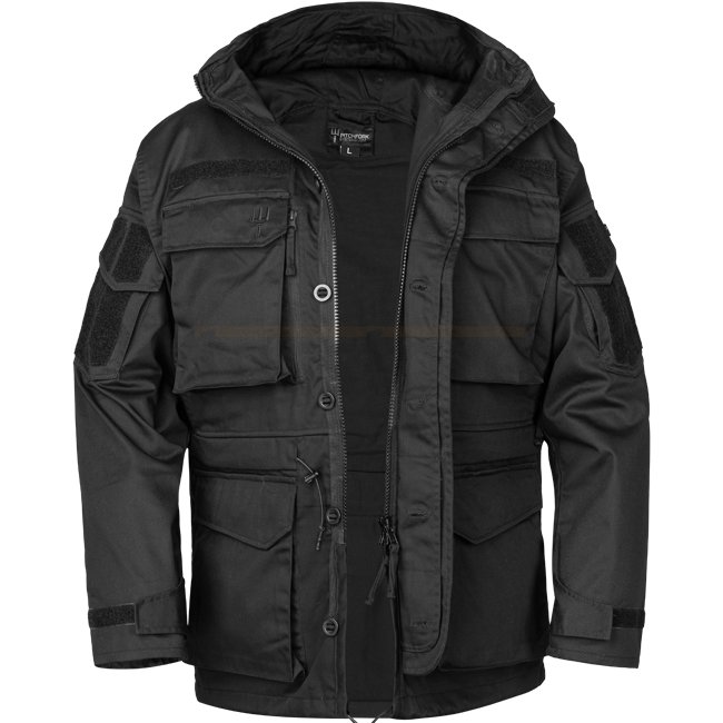 The Pitchfork Commando Smock in Black (2XL) is a heavy-duty jacket perfect for demanding users. Made from durable PolyCotton material, this smock is ideal for military applications and everyday use. Features adjustable hood, elastic drawstrings, and compr