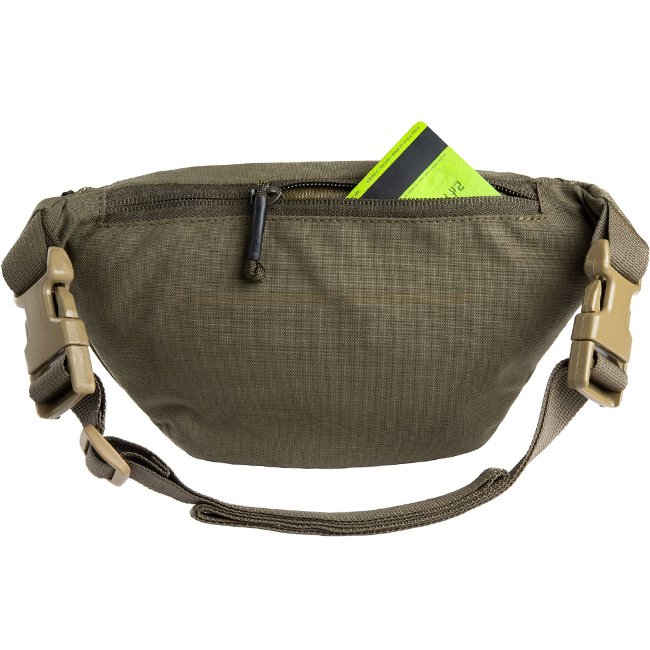 The Pitchfork Compact Waist Pack in Ranger Green: Slim, functional, and versatile. Features ergonomic design, separate compartments, Velcro strip for organizers, and adjustable waist strap. Ideal for everyday and tactical use.