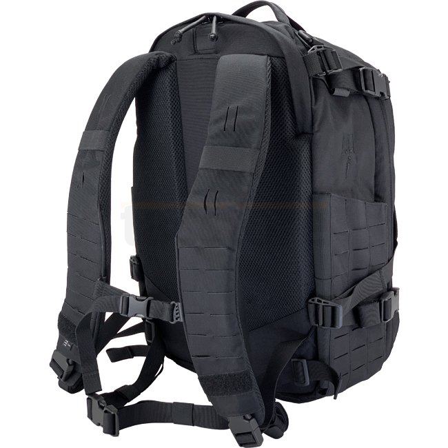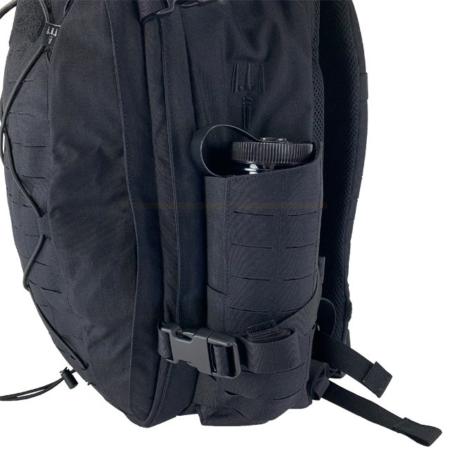 The shoulder straps come with small hook & loop rectangle on the front to attach a country or ID patch, a fully adjustable sternum strap as well as fast-release buckles to take off the pack. Laser-cut MOLLE surfaces provide additional installation space for pouches and accessories like a compass or other items you may need access to. Vertical slits can be used to install loops for holding a hydration tube or cables in place.