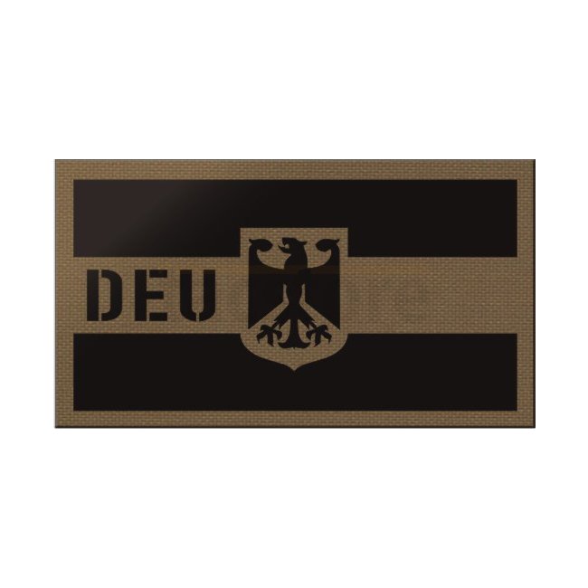 Pitchfork Germany IR Print Patch - Coyote. Front: IR foil, Back: Hook surface. Dimensions: 90 x 50 mm.