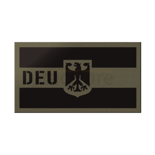 Pitchfork Germany IR Print Patch - Ranger Green. Front: IR foil, Back: Hook surface. Dimensions: 90 x 50 mm.