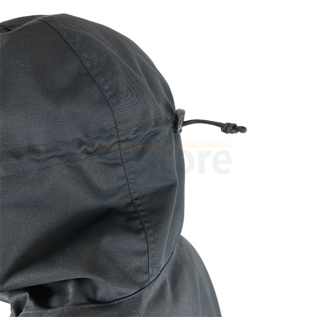 The buttons have been supplemented as far as possible with modern velcro, so that both can be used. On the hood there is also a small visor to protect against rain or sunlight. It can be folded inside when not in use and held in place by means of a velcro fastener. The hood is big enough to fit over average sized helmets. The jacket's spacious upper arm pockets feature velcro on the outside to attach insignia and patches. The frontal pocket in the center of the torso features velcro closures too. Underneath a pocket with side openings for the hands can be found. The hem circumference can be varied thanks to a drawstring.