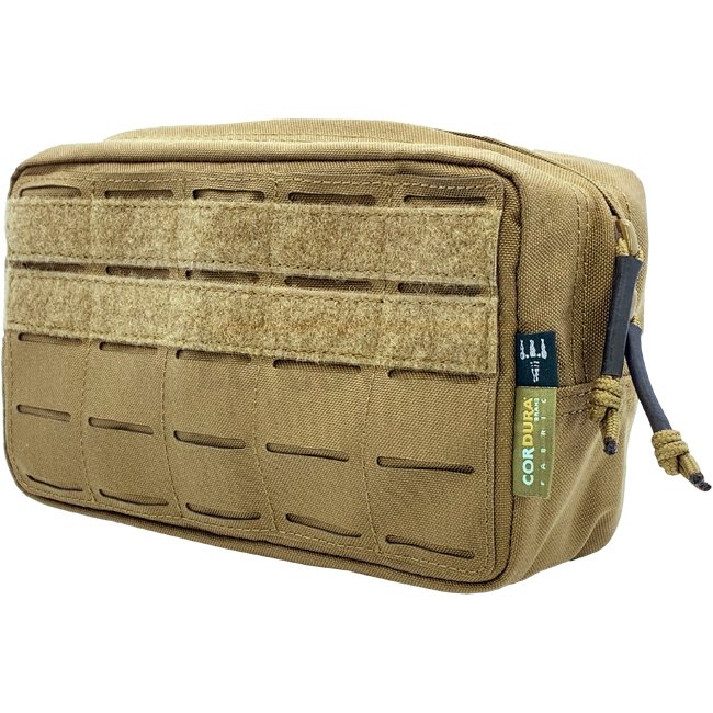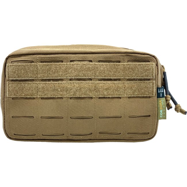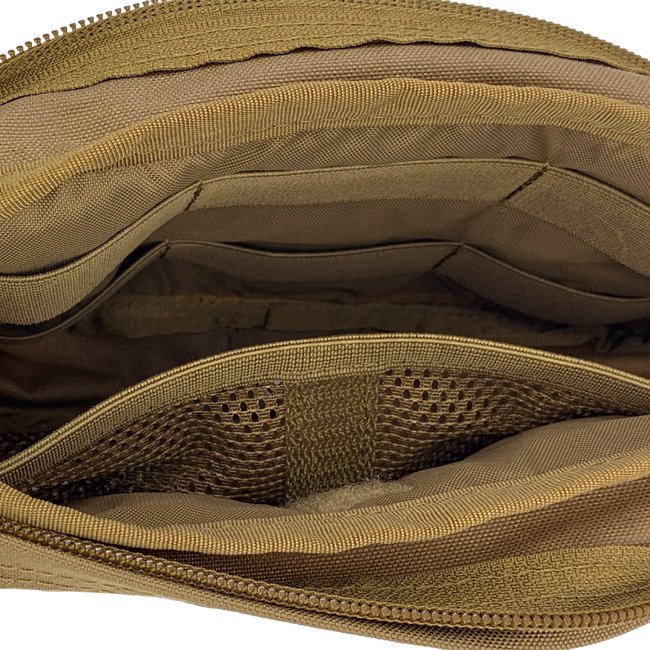 The Horizontal Utility Pouch Medium comes with a MOLLE system surface as well as two Velcro strips for patches. On the inside there are two rows of elastic loops and a mesh pocket on the other, which can be vertically divided by means of Velcro. This can safely store a whole lot of accessories.