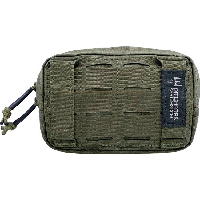 Pitchfork Horizontal Utility Pouch Small - Ranger Green: MOLLE system, elastic loops, mesh pocket, YKK zipper, Cordura 500D Nylon, LaserCut laminate