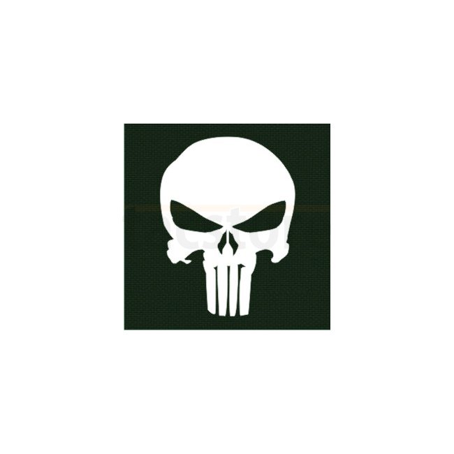 Premium Pitchfork Punisher IR Square Print Patch in Ranger Green. Front made of IR foil with a unique design, while the back features hook surface for easy attachment. Dimensions of 50x50mm.