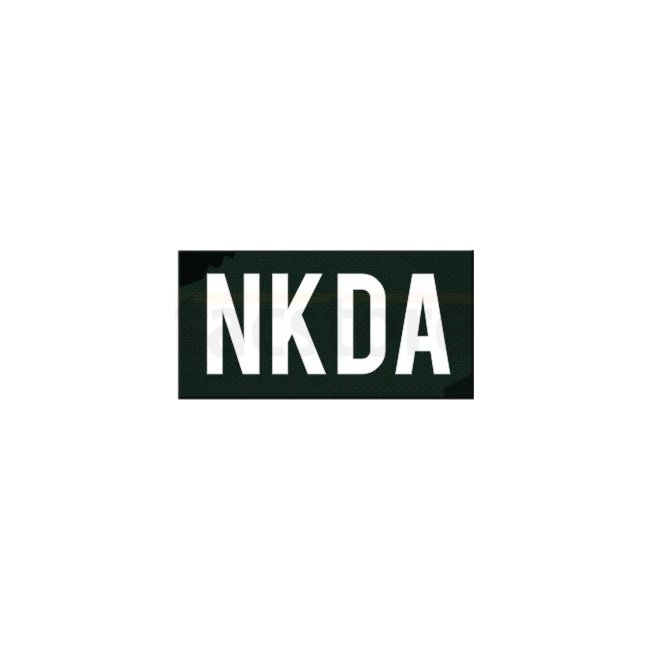 Pitchfork Small NKDA IR Patch in Ranger Green. Front: IR foil, Back: Hook surface. Dimensions: 50 x 25 mm.