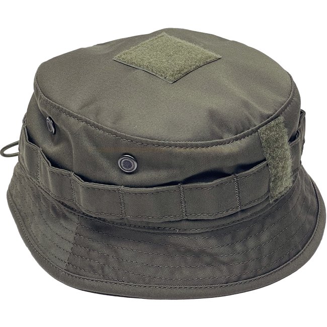 While maintaining the classic Soldier 95 boonie hat shape of the British armed forces, the crown is kept flat for a low profile. On the upper area a 50 x 50mm loop surface can be found to attach an IR reflective patch. Around the hat we used the same nylon-cotton material instead of stiff webbing ensuring an all-around low IR signature. Hidden underneath the circumference a shock cord is sewn in that allows infinitely variable size adjustment for a perfect fit, keeping the selected size by a cord stopper in the back. The brim is kept extremely narrow and slopes down at a steep angle. All other features found on standard models like the chin strap or a neck cover have been left away. Functionality thru simplicity.