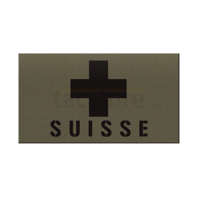 Pitchfork Suisse IR Print Patch - Ranger Green. IR foil front, hook surface back. 90 x 50 mm.