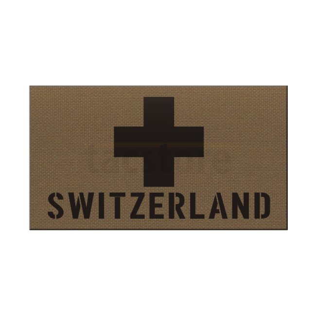 Pitchfork Switzerland IR Print Patch - Coyote. IR foil printed front, hook surface back, 90 x 50 mm dimensions.