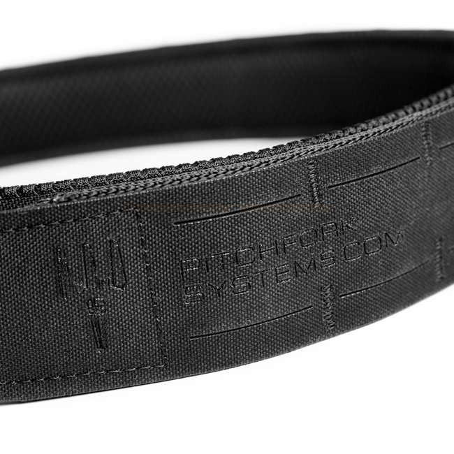 Lightweight Pitchfork The Lightfighter Belt in Black XL. Features AustriAlpin buckle, Cordura 500D laminate, US Mil-W-27265 Class 1A webbing, and original Cobra buckle. Two belts for versatility, ultra-thin design, and extreme durability. Made in EU.