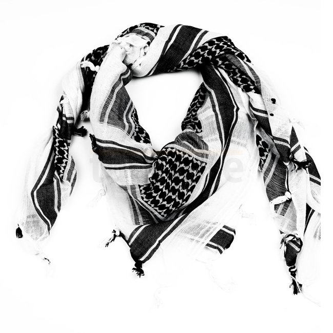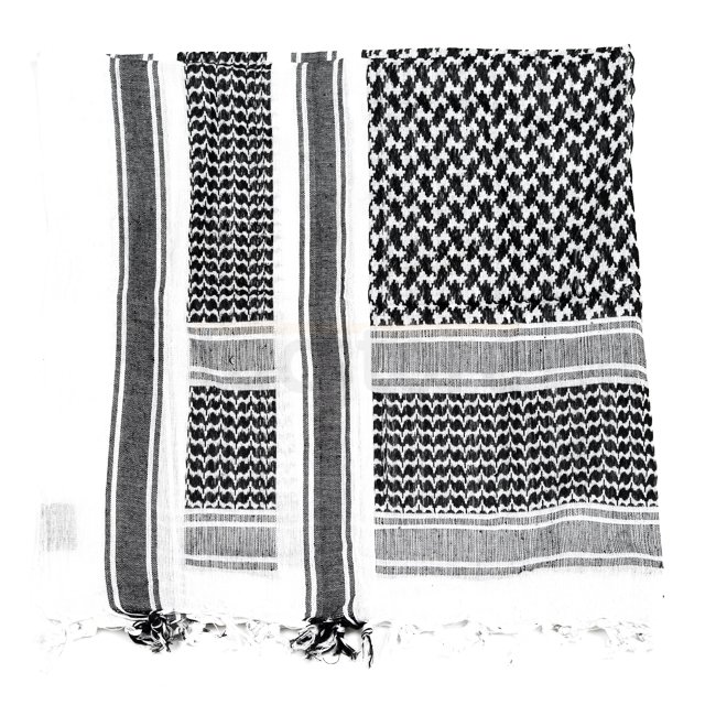 A stylish white Pitchfork Shemagh crafted from 100% cotton with traditional patterns.