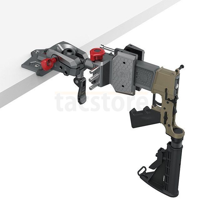 MULTI-AXIS BENCH-MOUNT VISE WITH TORQ-LOK: The first real bench vise made exclusively for guns and gun tools. Whether you're building and customizing, repairing and cleaning or mounting scopes and accessories, this vise improves every part of the GUN DIY experience. Quickly reposition your gun to any orientation without ever removing it from the vise. Insert the Torq-Lok pin for applying heavy force. Use the removable and reversible Gun-Fit jaw sleeves for a specific gun grip or turn the leveling knob for simple scope mounting and leveling. Build. Customize. Repair. Mount. Clean.