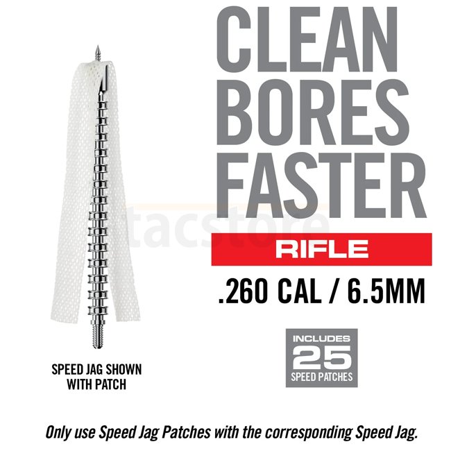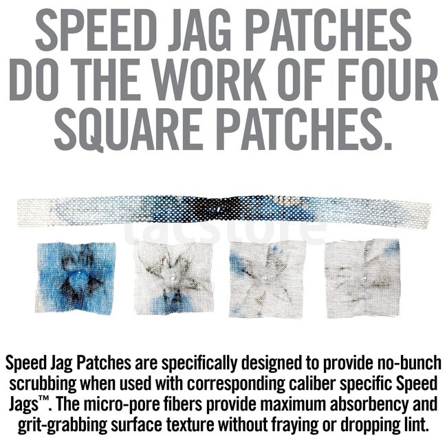 Unlike traditional jags, tips and square patches, Speed Patches are optimally fitted for maximum bore contact and no-bunch scrubbing when center-spiked over the Speed Jag. This means a cleaner bore with fewer pass-throughs. Less effort and faster results. Includes 25 Speed Jag Patches.