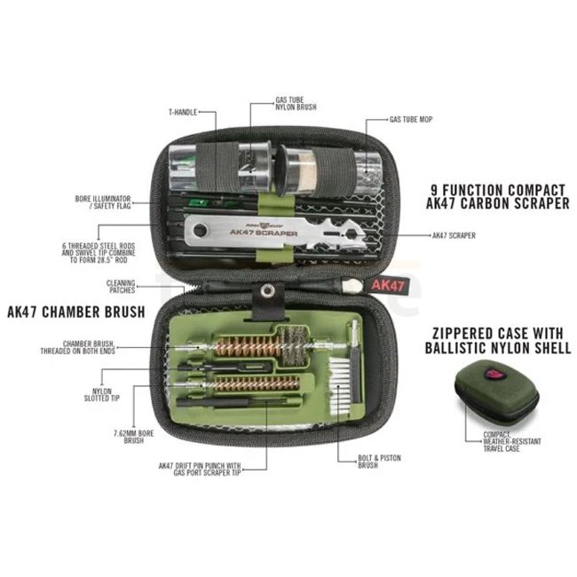 The Real Avid Gun Boss AK47 offers big functionality in a compact, rugged package. Perfect for packing in a bag, this cleaning kit includes a chamber brush, carbon scraper, gas tube brush & mop to ensure a thorough cleaning experience. It's smartly organi