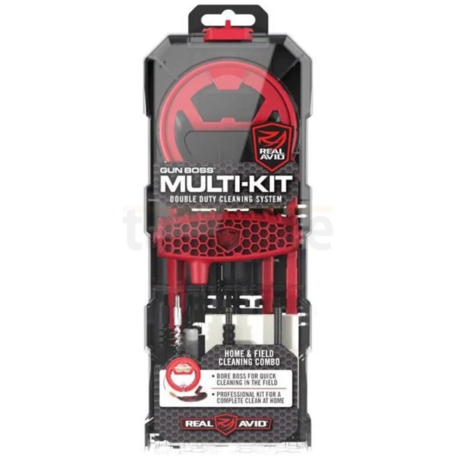 The Real Avid Gun Boss Multi‑Kit is tailored for rifles in .243 Winchester, .260 Remington, and 6.5 mm calibers. Packaged in a sturdy butterfly‑style case, this kit combines a fast‑field cleaning rope (Bore Boss) with a full cleaning setup for bore, action and chamber maintenance.