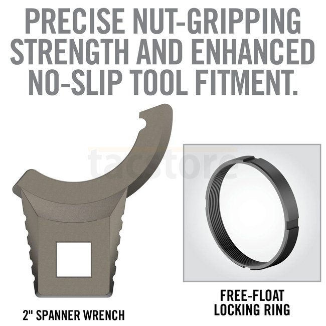 The Real Avid Master-Fit Armorer's Crowfoot 2 Inch Spanner Wrench is a purpose-built tool for precise fitment, delivering torque to free-float barrel nut locking rings. Titanium-coated stainless steel construction provides solid nut-gripping strength and