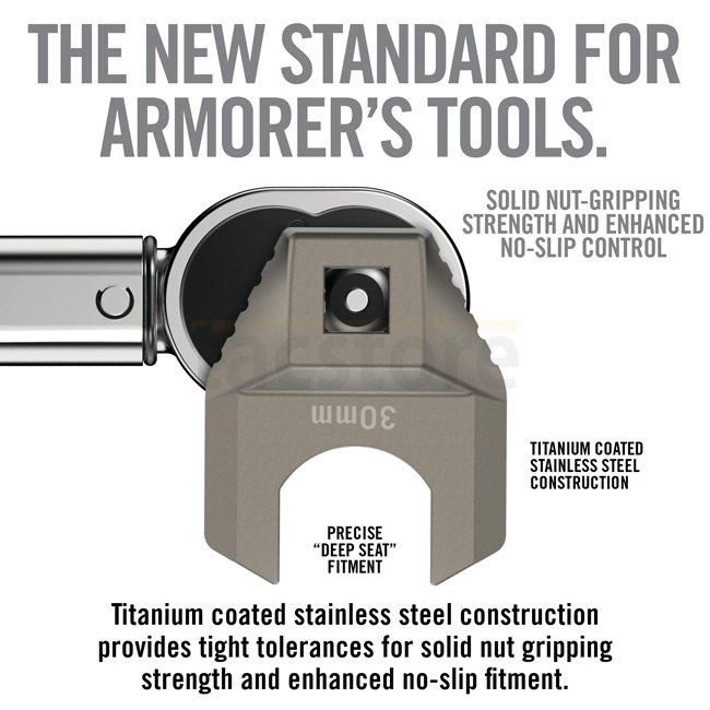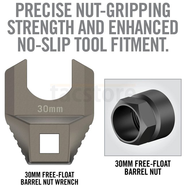 The Master-Fit 30mm Free-Float Barrel Nut Wrench is purpose built and specialized for precise fitment to confidently deliver torque to 30mm free-float barrel nuts. Titanium coated stainless steel construction provides tight tolerances for solid nut-gripping strength and enhanced no-slip tool control. When paired with the Master-Fit ½” Drive Torque Wrench, this Master Grade combo will take your gun building experience to a whole new level. The Master-Fit ½” Drive Crowfoot Wrenches also work with any standard ½” drive wrench.