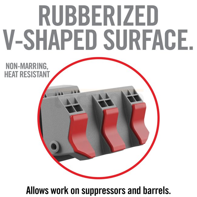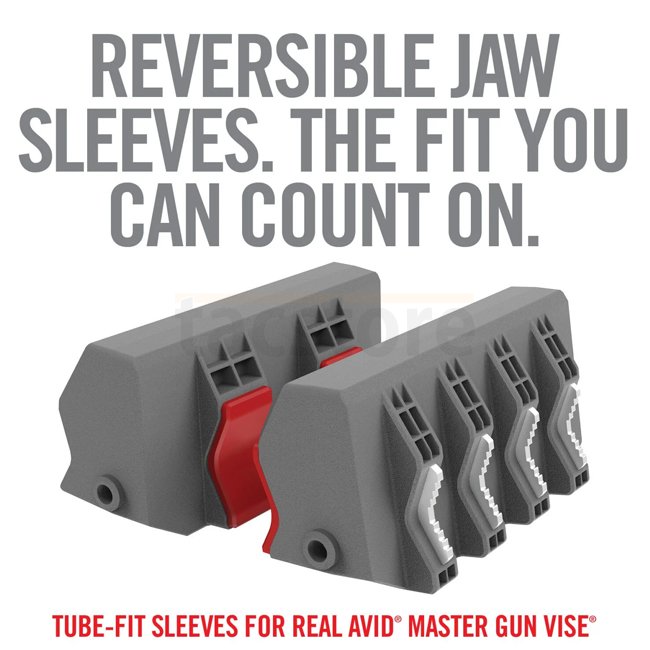 The Smart-Jaws – Tube-Fit Sleeves for Master Gun Vise – revolutionary tools designed to secure cylindrical objects with precision and ease. These upgraded vise jaws are engineered to provide an unyielding grip on suppressors, PVC, cast-iron pipe and all types of tubing. The dual-sided design offers two distinct gripping surfaces tailored for different applications. For delicate items like suppressors, the rubberized V-shaped surface provides non-marring and heat-resistant support that ensures ample gripping power without damaging your investment. When working with robust materials such as cast-iron pipe or steel tubing where marring is not a concern, simply flip the jaws to reveal a metal V-shaped surface that delivers an ultimate vice-like grip. Designed specifically for use with Master Gun Vise, these sleeves can effectively hold up to 3.75″ / 9.5cm diameters making them versatile tools in securing various sizes of cylindrical objects during maintenance or modification tasks.