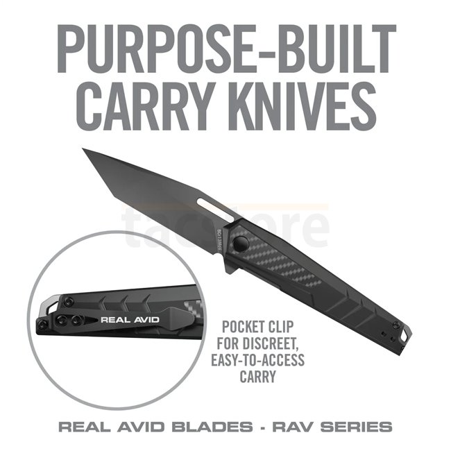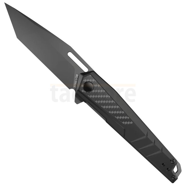 The RAV-6 features a 3.4 in Tanto blade forged from 8Cr13MoV steel with a titanium finish for improved corrosion resistance and robustness. Its aluminum and carbon fiber handle ensures a blend of strength and lightweight control. Equipped with a liner lock and spring-assist for fast one-hand opening, it includes a low-profile deep-carry clip for discreet accessibility.