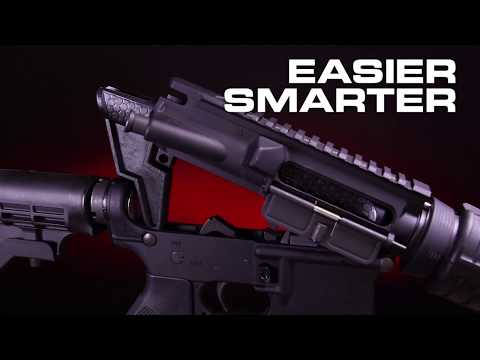 Real Avid Smart Lock Bore Guide: Clever design for locking AR15 upper open & aligning cleaning rods inside barrel. Pivot-locking arm securely holds upper at optimum angle, protecting chamber & bore from damage. Easier to push tight patches through bore, r