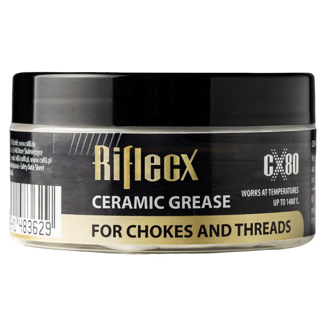 The RifleCX ceramic grease is used as a means of maintaining muzzle devices and chokes on firearms and is resistant to temperatures up to 1400°C. After cleaning the thread, apply grease to the surface to prevent any seizure. By using grease on the threads and muzzle devices, you can also retain all impurities, dirt and sediment.