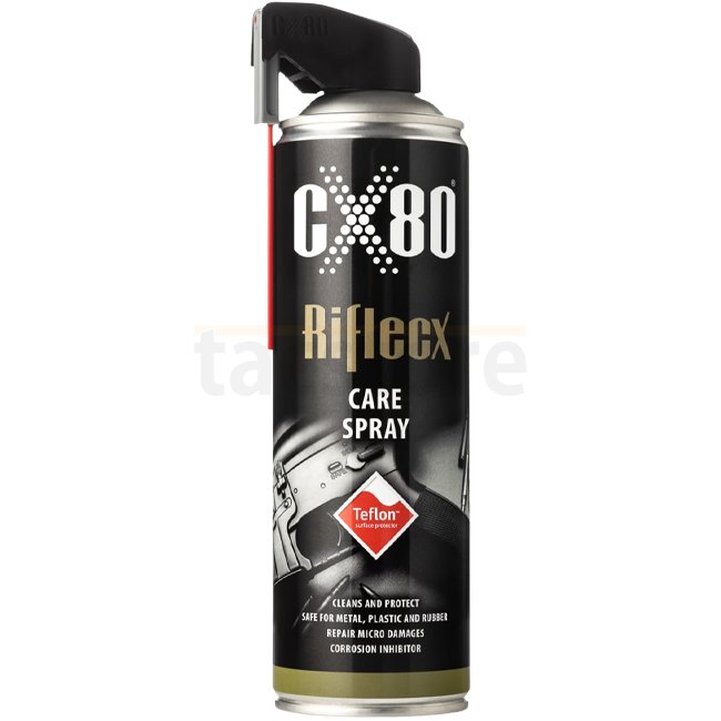 The Rifle CX Teflon Gun Care Spray is used for gun care and is applied after cleaning the gun. A long applicator helps you to easily reach even hard-to-reach areas so you can apply the spray on all parts of your firearm. After application, the excess is either wiped off with a clean cloth or blown away with compressed air. Ideally, however, the gun is left on the gun rest to air dry and then stored properly. Since the Teflon contained in the spray has a preservative effect, when air-dried, the liquid components evaporate and the protective Teflon layer remains. This layer then protects primarily against corrosion, abrasion and wear.