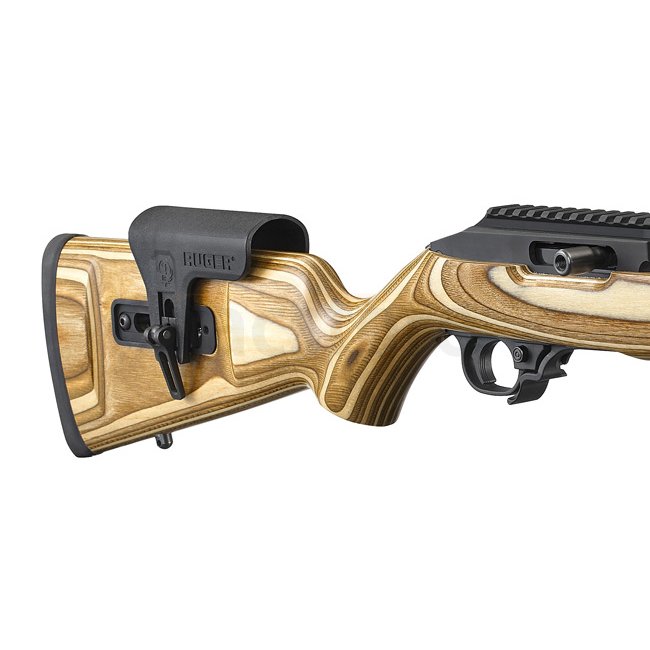 The Ruger 10/22 Competition is a high-performance .22 LR semi-automatic rifle designed for competitive shooting. Featuring a natural brown laminate stock with an adjustable cheek rest and a fluted, cold hammer-forged stainless steel bull barrel, it offers exceptional accuracy and reliability.