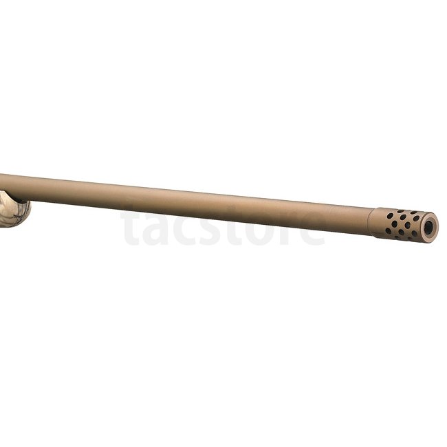 The cold hammer-forged barrel features a factory-installed muzzle brake and threaded muzzle for accessory compatibility. The Power Bedding™ system and three-lug bolt with 70° throw ensure smooth cycling and consistent accuracy. A one-piece Picatinny rail is pre-installed.