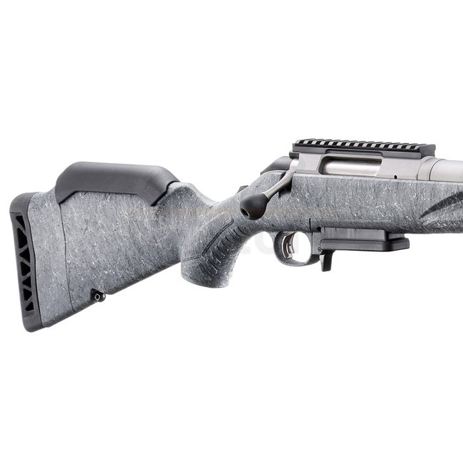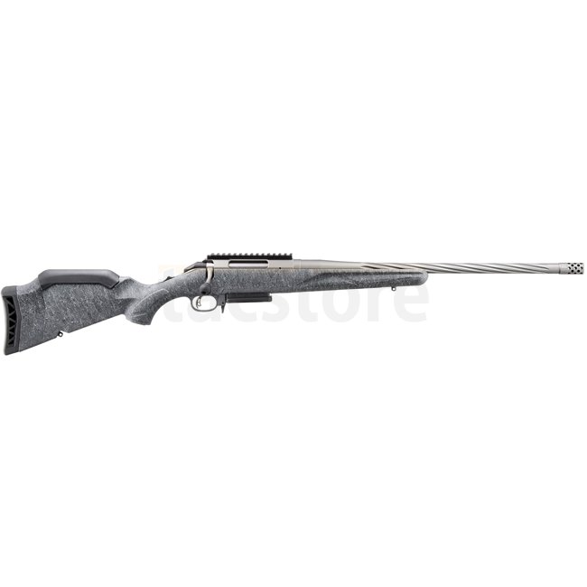 Equipped with the Ruger Marksman Adjustable™ trigger (adjustable from 1360g to 2270g), the rifle is tuned for precision shooting. The Power Bedding™ integral block free-floats the barrel while solidly anchoring the Gehäuse. A three-lug stainless bolt with a 70° throw ensures smooth cycling and scope clearance.