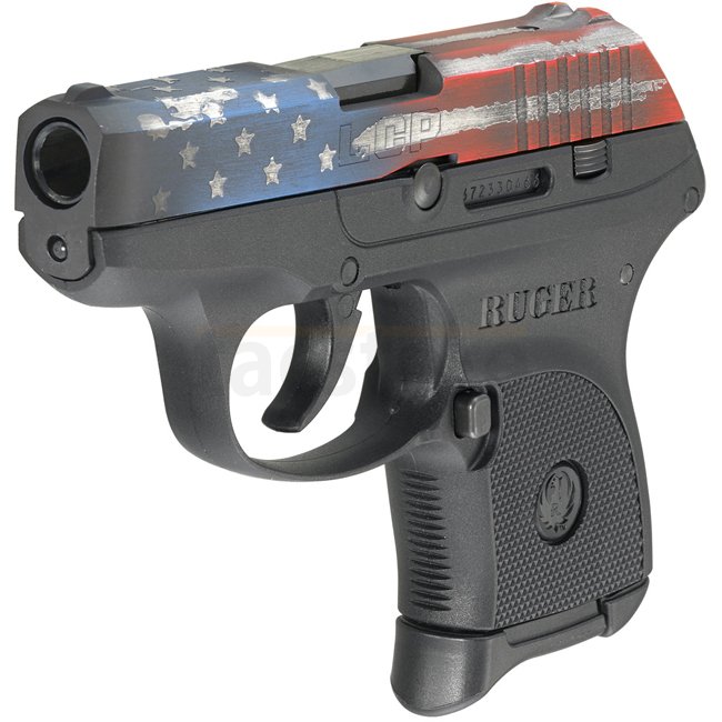 The Ruger LCP 13710 is a compact .380 Auto pistol featuring a durable American Flag Cerakote® slide. Weighing only 272g, it is designed for discreet carry while maintaining strength and function. The textured grip frame ensures a firm hold and the recessed hammer prevents snagging.