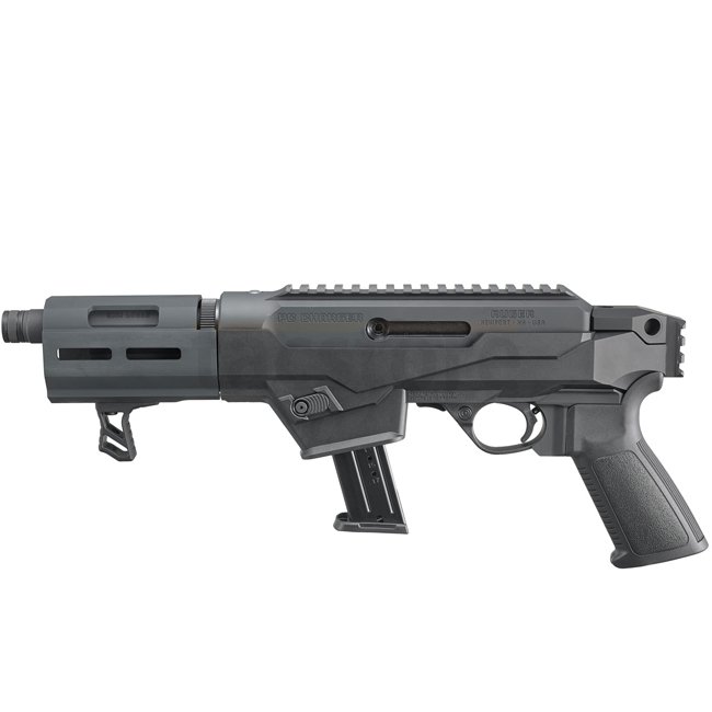 The Ruger PC Charger is a compact and highly modular firearm chambered in 9mm Luger. Its takedown design allows quick separation of the barrel assembly from the Gehäuse for easy transport and storage. The cold hammer-forged chrome-moly steel barrel delivers durability and consistent accuracy. The CNC-milled aluminum handguard features integrated M-LOK slots for accessory mounting. The chassis system accepts AR-style grips and features a flared magwell for rapid magazine changes.