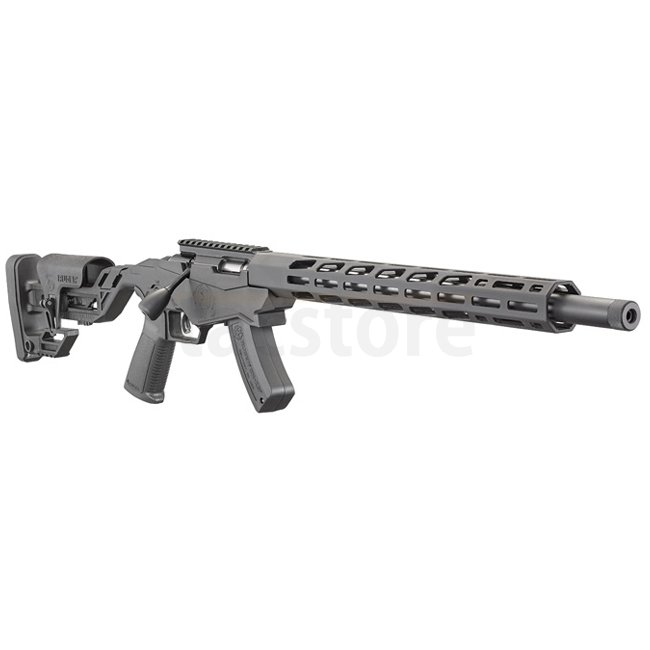 A Big-Gun bolt throw adjustment simulates centerfire cycling and reduces short-stroke errors in competition. The Ruger Marksman Adjustable™ trigger allows precise pull tuning (2.25–5 lb).