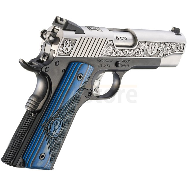 The Ruger SR1911® Commander-Style is a precision-engineered semi-automatic pistol chambered in .45 Auto. Designed with a lightweight aluminum frame and stainless steel slide, it delivers excellent balance and reduced carry weight without compromising durability. The classic 1911-style trigger, extended beavertail grip safety and Novak® 3-dot sights ensure intuitive handling and fast target acquisition. Enhanced with a skeletonized hammer and trigger, this model offers smooth, consistent performance in a compact commander format.