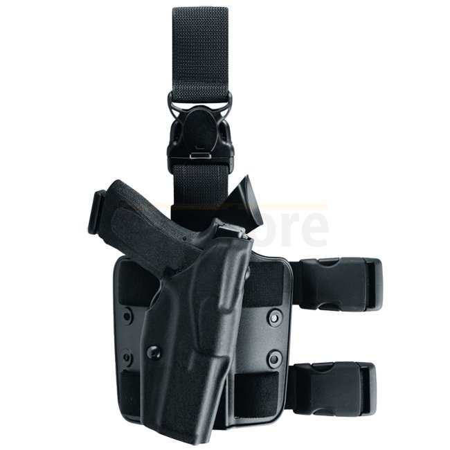 The Safariland® 6355 is a tactical drop-leg holster with a quick-release leg strap purpose-built for tactical situations. The intuitive ALS® (Automatic Locking System) offers excellent retention through an internal locking device that retains the weapon in all directions. The Hood Guard, an external shield, provides additional safety by protecting the release mechanism against takeaway attempts. Completely operable with the thumb, the holster is instinctive to use, and once the device is deactivated, a simple straight-up draw allows weapon retrieval.