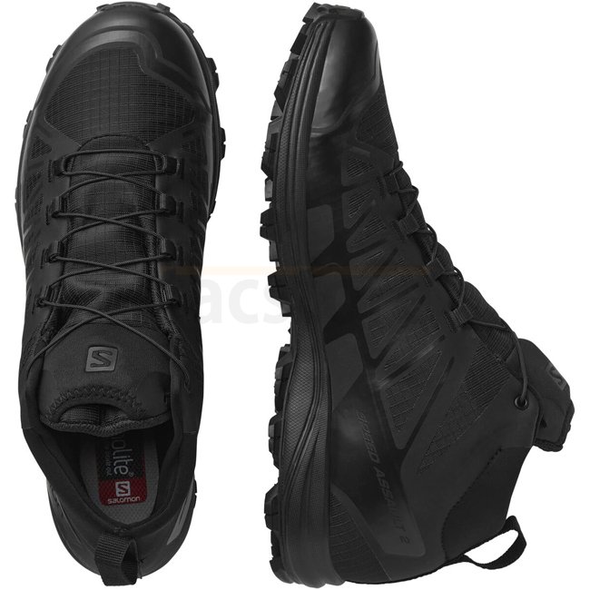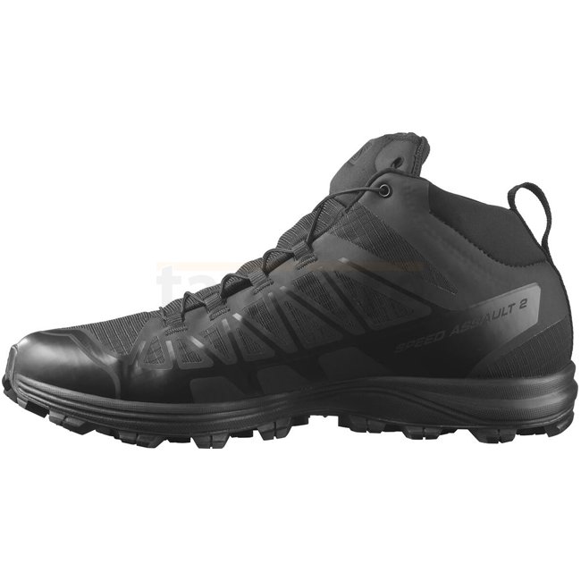 The Salomon Speed Assault 2 in Black, UK size 6.5, is a high-performance shoe ideal for outdoor adventures. With a sleek design and durable construction, it provides excellent traction and stability on various terrains. Perfect for those who seek both sty