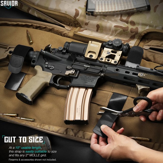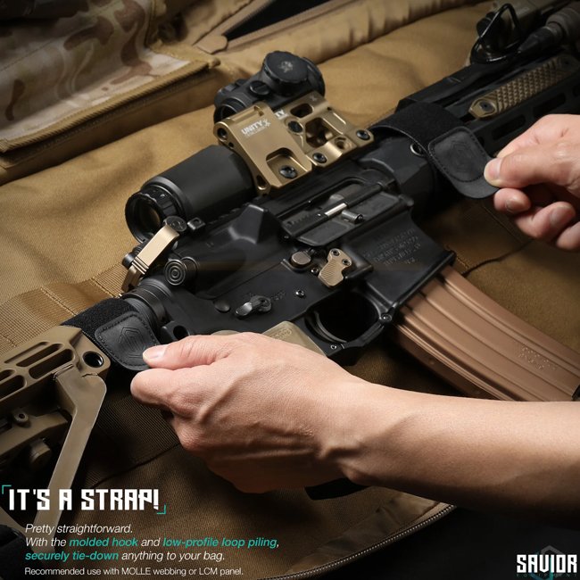 No-Fray Cuttable Straps Designed for MOLLE Grid (Hook backed). Two pieces included.