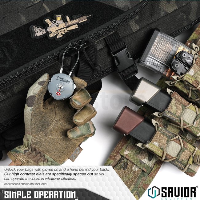 Câble antivol à 3 chiffres pour sécuriser les sacs et les étuis rigides. Caractéristiques: • Câble antivol à 3 chiffres • Approuvé Travel Sentry® • S'adapte à toutes les fermetures éclair verrouillables Savior Equipment Matériel: Boîtier: Alliage de zinc moulé Câble: acier tressé de calibre 16 Dimensions: Taille: 86 x 43 x 15 mm Longueur du câble: 85 mm En boucle: 45 mm Diamètre du câble: 3 mm