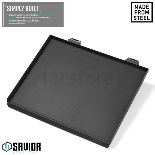 The Savior Equipment Wall Rack System Folding Workbench is a versatile, foldable workbench that seamlessly integrates into the modular wall rail system from Savior Equipment. It provides a sturdy and space-efficient solution for various workspaces.